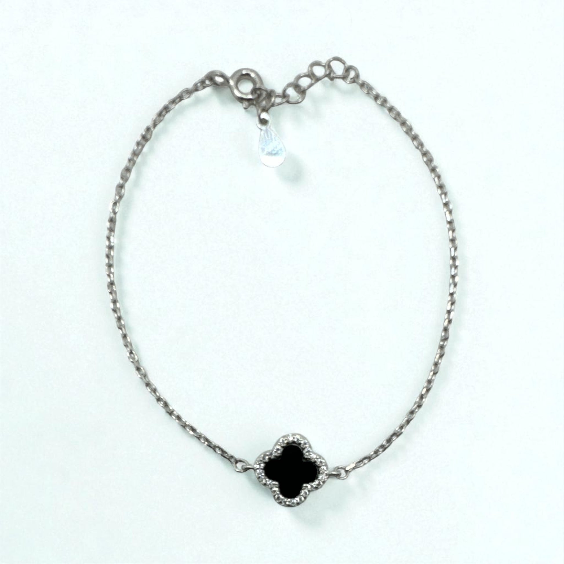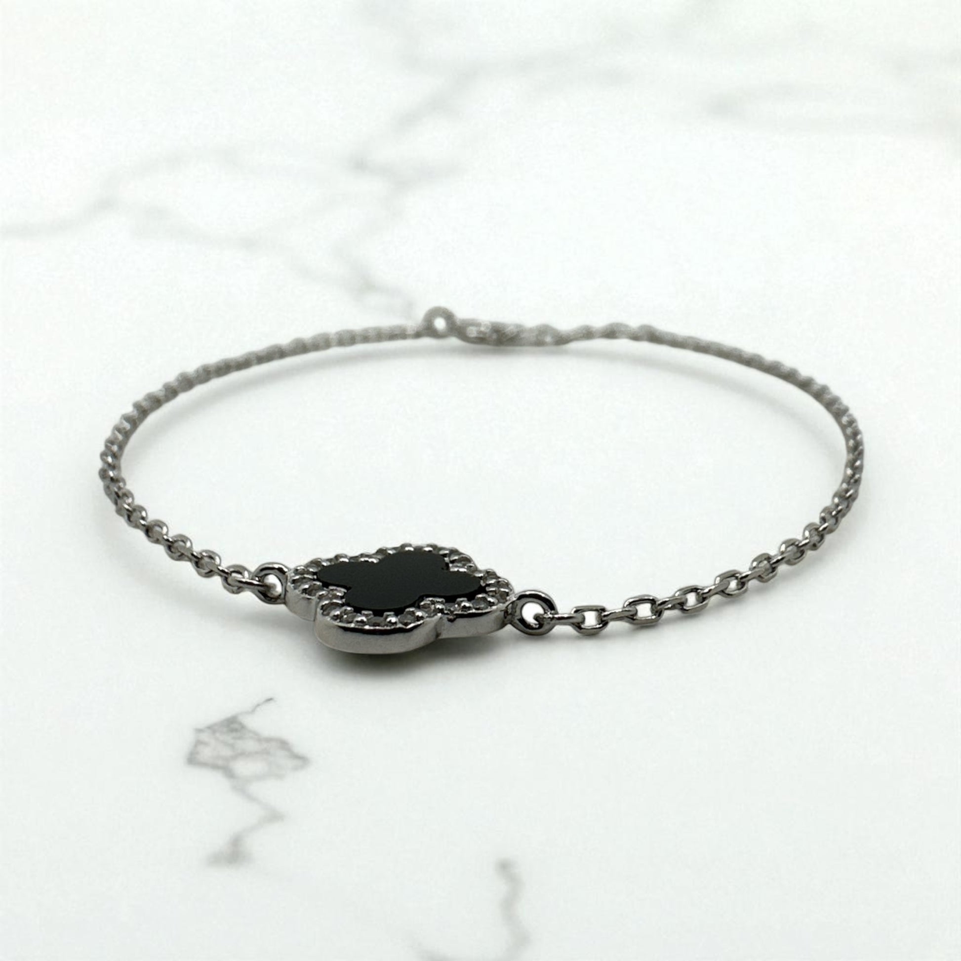 Silver Black Clover Bracelet – Symbol of Luck and Elegance